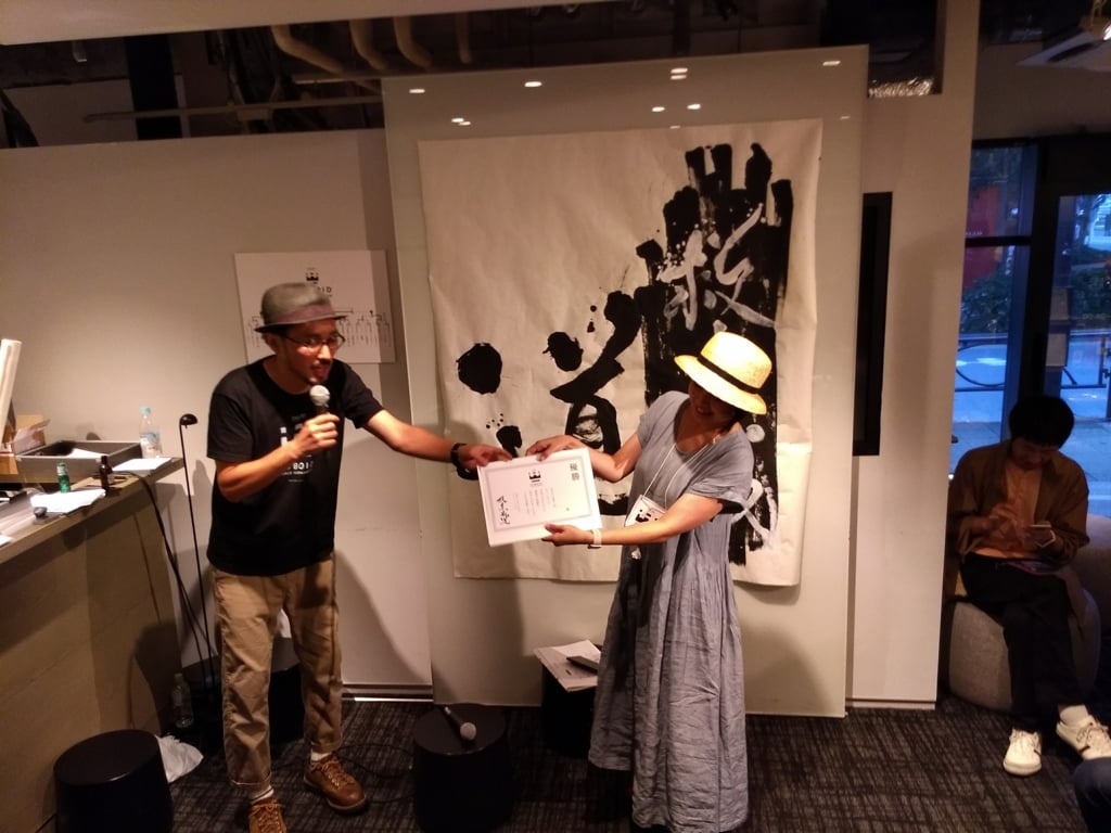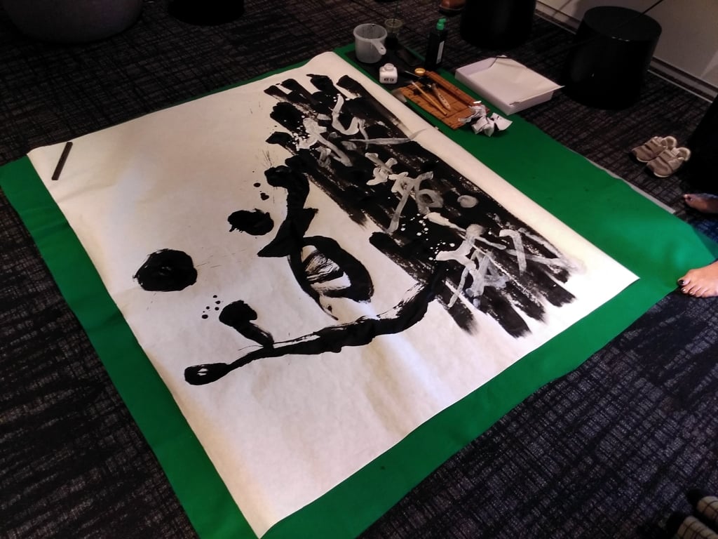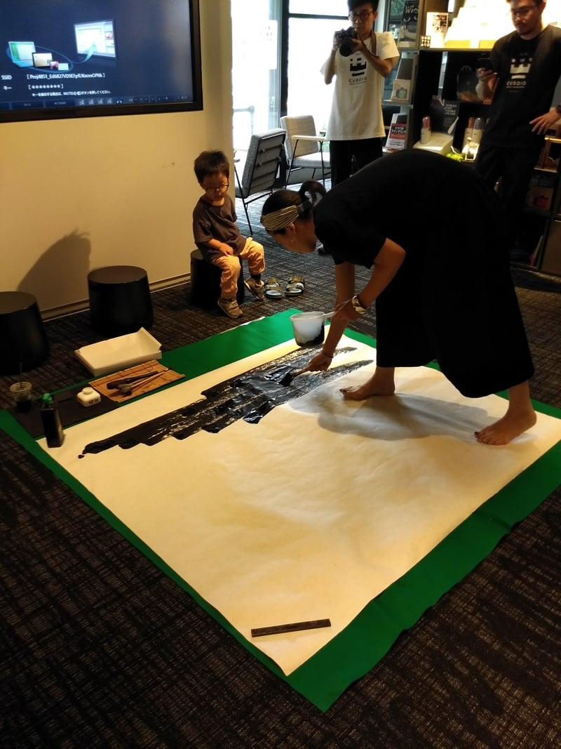 まずはオープニングイベントは書家 石川 咲登子氏によるライブドローイング&トークでした。私も幼少の頃にほんの少しだけ書道を習っていたのですが、今ではまったく文字を書くことがなく、タイピングした方が圧倒的に早いという事もあって、字を書くことが苦手でもあります。そこはやはり、本物のプロは凄いです。書いているところも格好良いし、できあがった書も素晴らしいです。その他、リクエストを受けての即興ドローイングもすべて味があって、ただ上手いというのとは異なる仕上がりで感動しました。