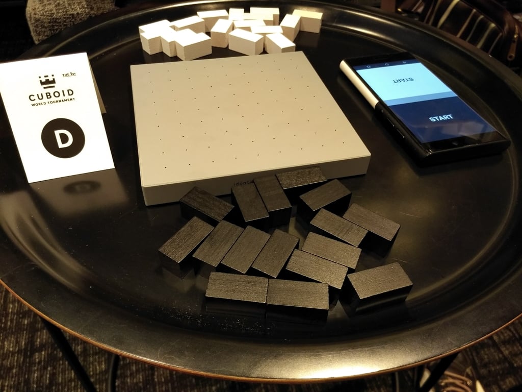 第1回CUBOID世界大会は世界中から集結した32名が真剣勝負を繰り返してチャンピオンを決めます。私も参加させてもらいましたが、2回勝ってベスト8まではいったものの、そこで敗退してしまいました。練習するぞと、CUBOIDを中国出張に持って行ったものの、結局そんな時間はまったくなく、ただ持っていって持って帰ったくらいの状態でしたので、限られた時間の中での変化を読み切れませんでした。残念ですが、次回があれば必ずやもっと強くなって挑戦しようと心に誓いました。