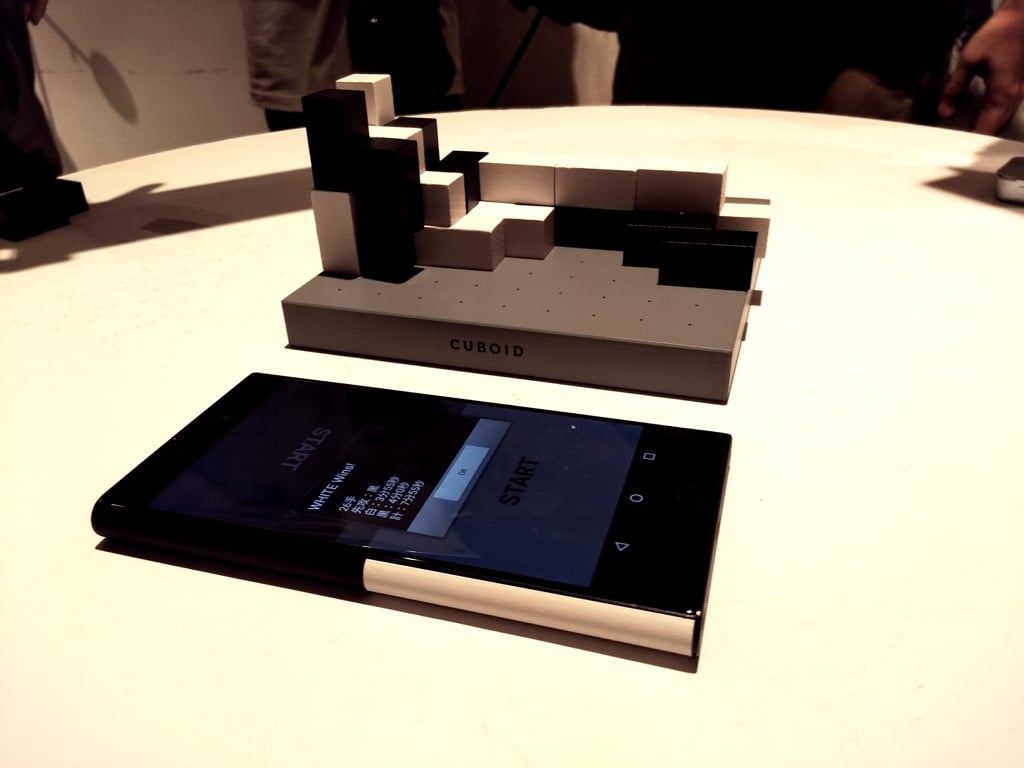 そして、写真をご覧ください。そのチェスクロックアプリはAndroid版でNuAns NEO [Reloaded]上で動作しているのです。TWOTONEをスムースホワイトとスムースブラックにして、ちょうどCUBOIDのキューブと同じカラーにして、そこでCUBOID世界大会のために開発されたオリジナルアプリが動作しているのは圧巻です。