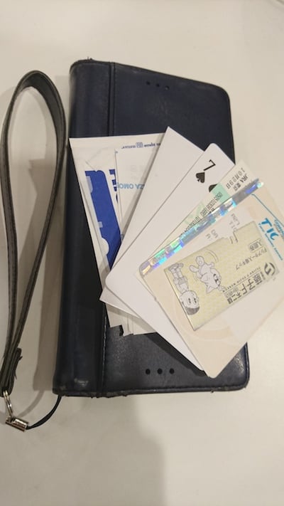 また、このケースは前面に大きなポケットがついているのですが、レシートからチケットからよくわからないものまでとりあえず詰め込めるので、意外と便利です。そういえば何いれてたっけ?と思い中身を取り出してみたところ、