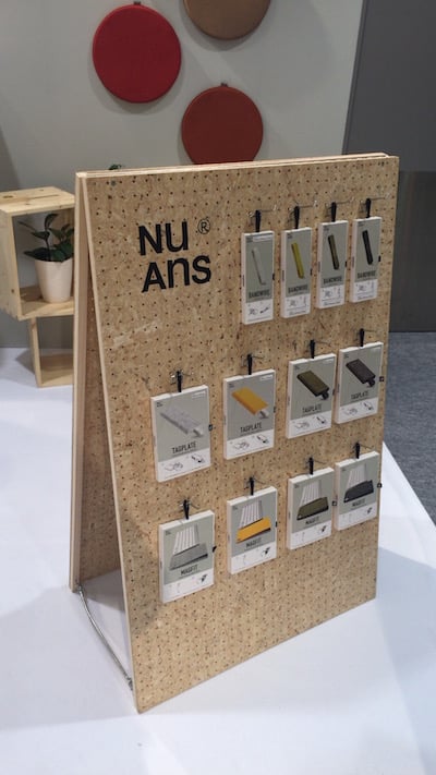 新ブランドNuAnsをひそかに支える存在、それが「OSB」です。NuAnsの展示で製品をひきたてる役割を担っている逞しい存在です。何かというとズバリ木材で、OSBは品名となります。もともとは、構造用の材料として作られているもので、木材を積層してできる素敵な外観から、インテリアショップやアパレルショップの壁材や什器としても使用されています。みなさまもどこかで見かけた事はありませんか?