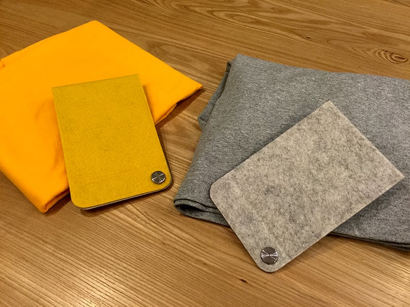 NuAns製品のフェルトは特注の2色混合のため、白といっても白×うっすらグレー、グレーといってもグレー×うっすら白といった中間色の中間のような色味で、特に微妙な色合いのサフランなんかはTシャツでは近しいカラーというとイエローになってしまうために、製品合わせは無くしました。生地から作成すれば制作できそうですが、今回ベーシックなカラーで!