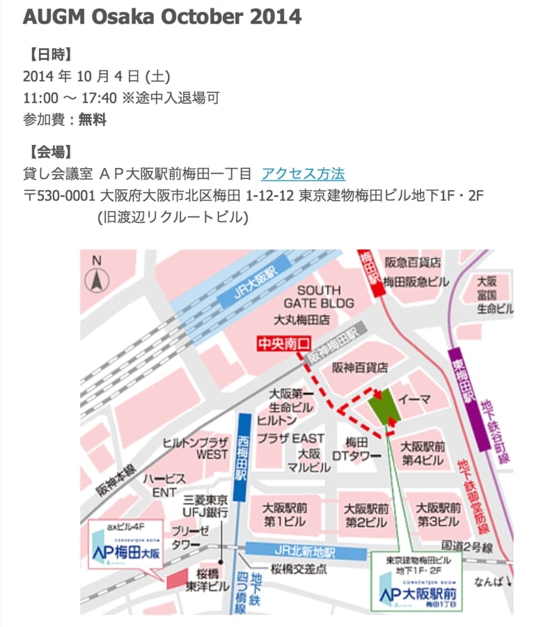 毎年、iPhoneが発売されてからAUGMロードが再開することになっており、今回のAUGM大阪がその始まりです。今回はいつもよりも大きな会場で、大きく開催されるようです。もちろん、私も参加させてもらいますし、新製品をいろいろと持ち込んで、細かなところまでしっかりと説明させてもらいたいなと思っています。