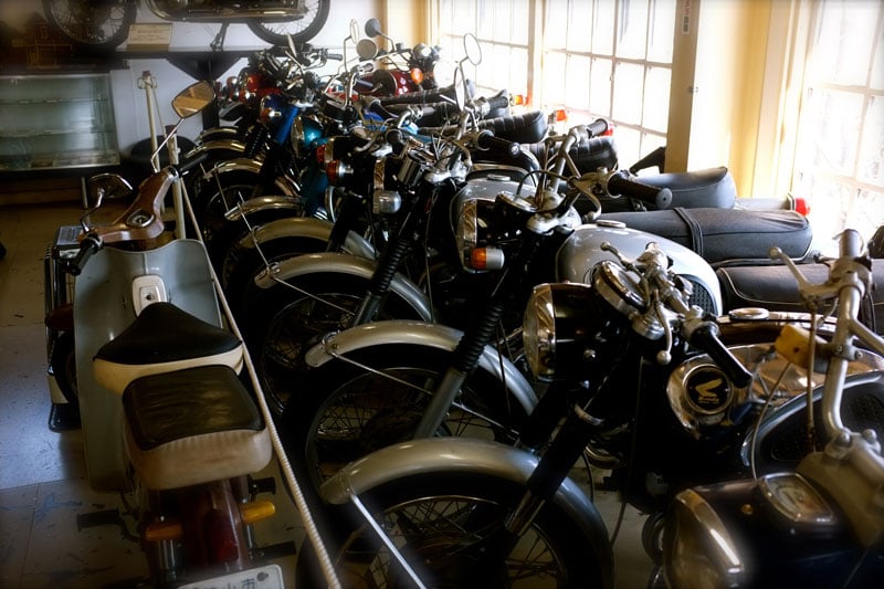 2階には100台以上のバイクが並べられていましたが、これまた古いものばかりでどれも格好良いものばかりでした。今のバイクのデザインはどうも好きではなかったのですが、昔のものはデザインも優れていたんだなぁ、と感じました。中には非常に非常に高価なバイクもありましたが、そうでなかったとしてもバイクですからそれなりの価格だったんじゃないかなと思っていたら、本業の仕事の機械を販売してお金を作って購入したものもあるとか。それくらいの執念がなければ集められないほどのコレクションでした。なお、ここに展示しているのは本当に一部だそうで、倍以上が他の場所に保管されているそうです。