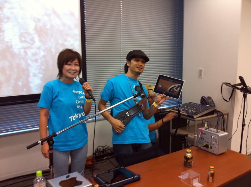 もうFingeristとして定着してきた感のあるSandyTripが演奏した後に、これまた世界三大Fingeristとして名を馳せるITmediaの松尾氏とフォーカルポイントコンピュータの恩田氏が参加してのセッション、その後にiPod Styleの戸津氏と私が参加してのフルバンドでの演奏になりました。