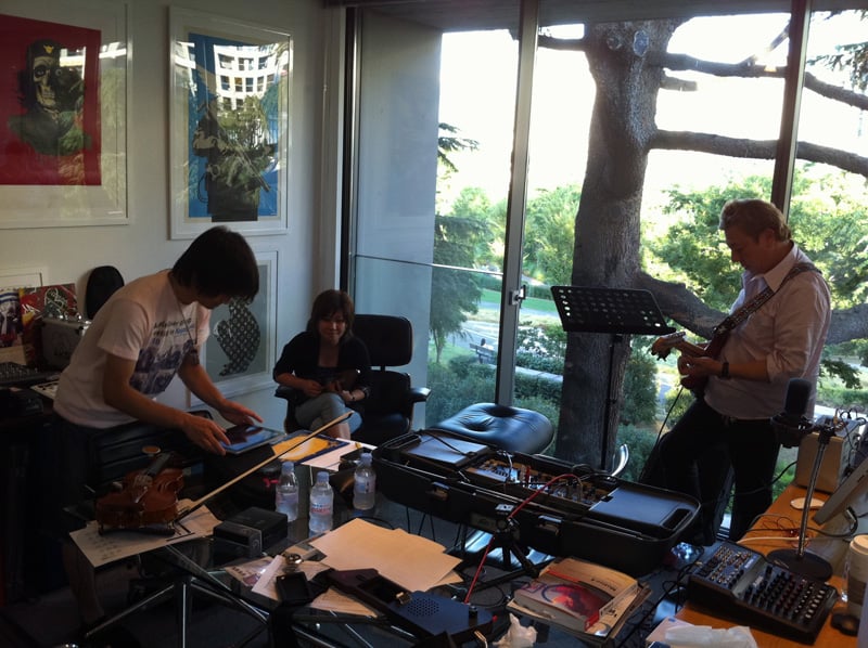 AUGM東京本番前日にもバンドメンバーでフォーカルポイントコンピュータの引っ越したばかりのオフィスにお邪魔して練習をしました。余談ですが、この部屋は社長の恩田氏の部屋ですが、まるでスタジオのように音響機材や楽器が並んでいて、遊び心がある部屋でした。立地も素晴らしくて東京ミッドタウンの目の前ながら、緑も見えて開放感もあるオフィスで羨ましかったです。