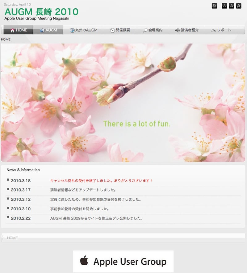 今週末(4月10日)はApple User Group Meeting in長崎(AUGM長崎)が開催されます。今回も、事前予約受け付けを開始してからすぐに定員数に達してしまうほどの盛況ぶりで、集まるベンダーの数も相当多くなります。そして、まだ日本では発売されていないにもかかわらず、おそらく20台くらいのiPadが集結する一大イベントになることは間違いありません(私も1台持ち込みます)。これって、長崎が日本で一番ホットな場所になるということですから、その場にぜひお越しください。