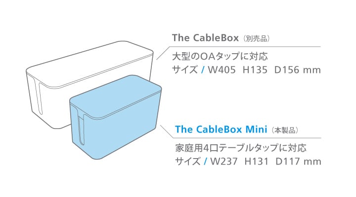 そして、「ヤバイ」の言葉の通り、The CableBoxは大ヒットを記録し、Good Design賞を受賞後にはさらに加速しました。その中のフィードバックから、日本に合わせたサイズが必要だということを痛感していた私たちはなんとか頼み込んでCableBox Miniを作ってもらうことに成功しました。これで足下だけでなく、デスクトップにも置くことができるコンパクトなサイズを実現することができました。