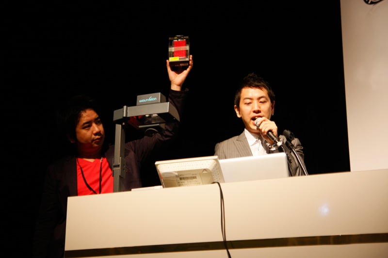 iPhone 3GS前夜祭に参加させていただき、最後の最後にプレゼント争奪ジャンケン大会の際に製品説明のプレゼンテーションをさせてもらいました。10時から始まったイベントは途中で孫正義社長が登壇し、カウントダウンをして盛り上がった後はまったりと進行していました。最初は5分くらいで、という話だったのですが「少しくらい」伸びても大丈夫だということで20分くらいやらせていただきました。