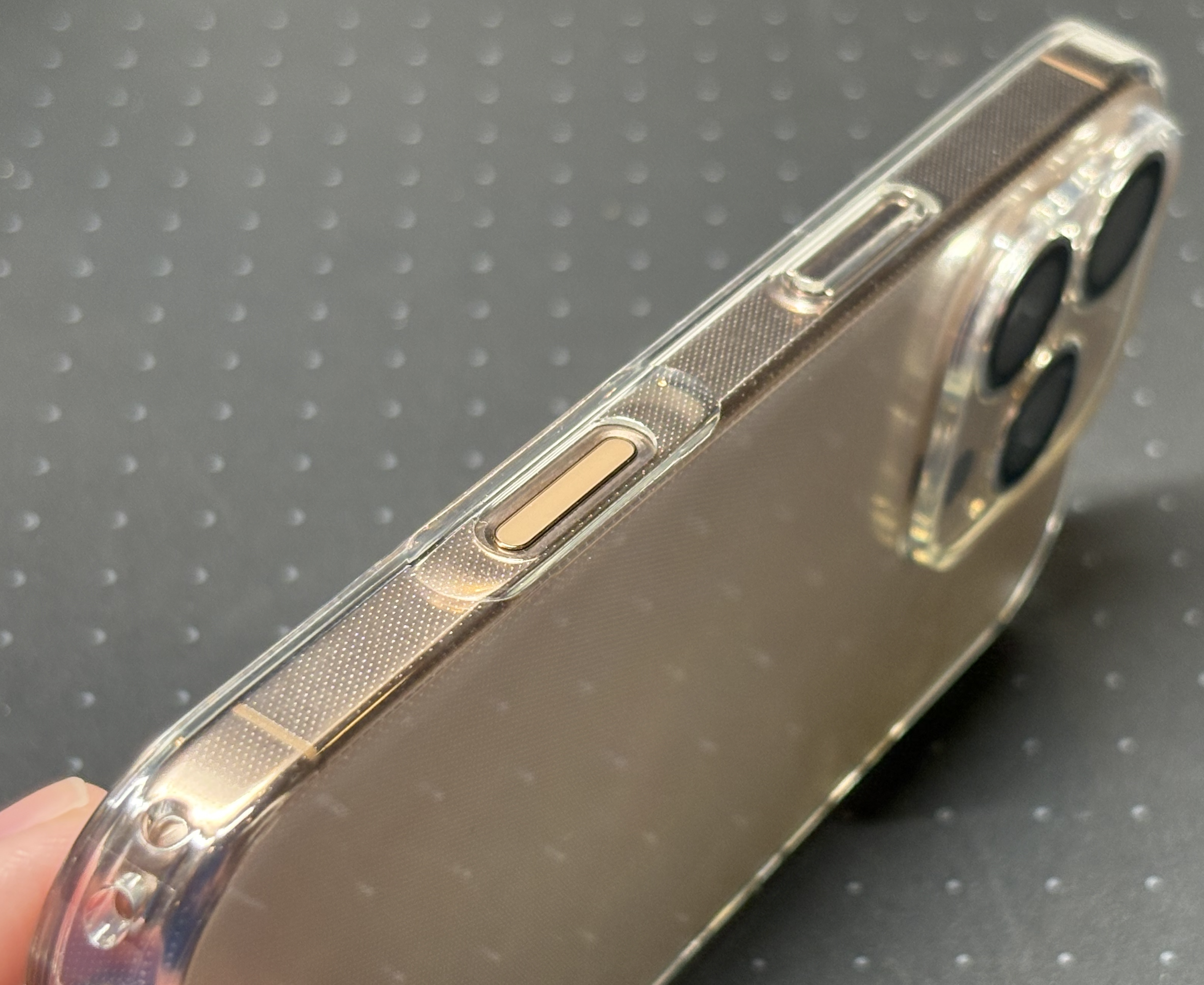 このケースのボタンは、よく見るとケースからまったく飛び出ていない、一段落とし込まれたような設計になっています。