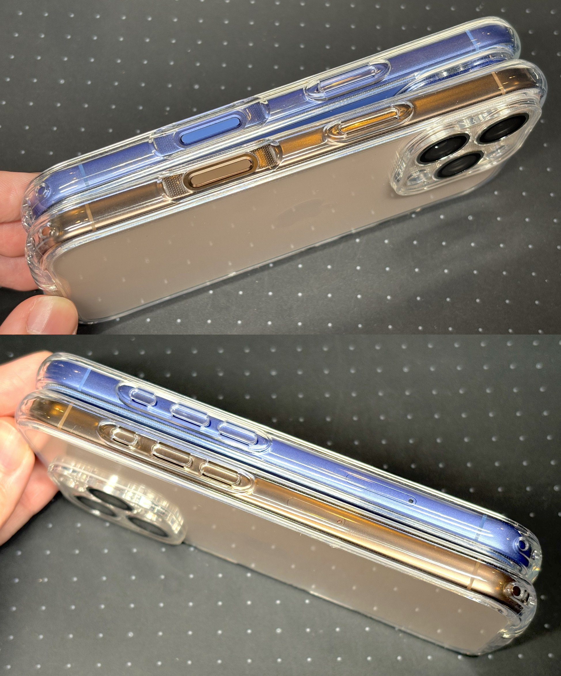 通常のクリアケースの側面には、マイクロドットという白い点の模様が付きます。