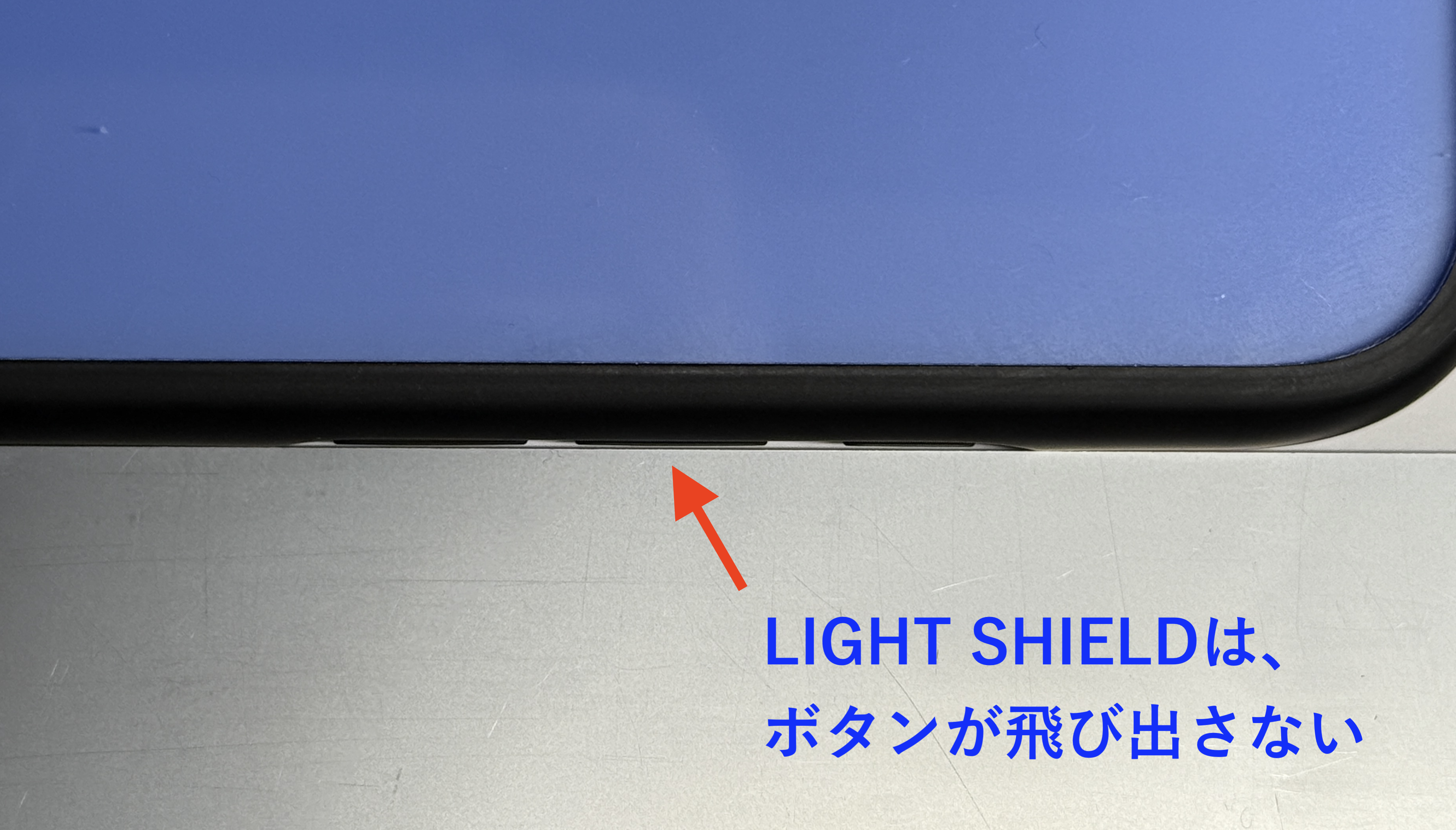 LIGHT SHIELDではボタンが飛び出ていないので、その誤作動は起きません。個人的には嬉しいポイントです。