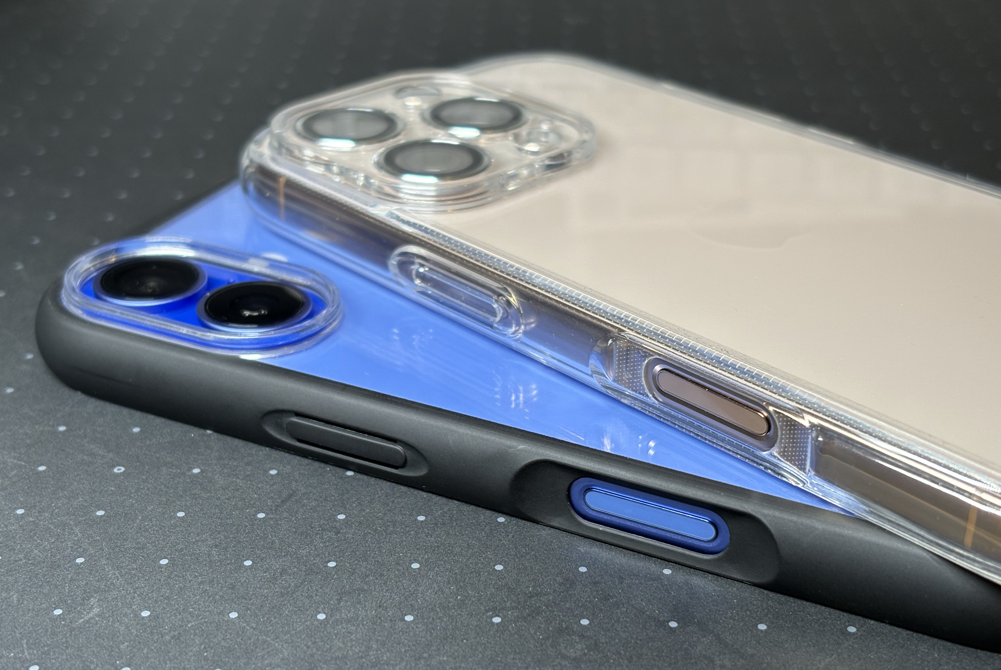通常のケースでは、側面のボタンはケースから飛び出ています。