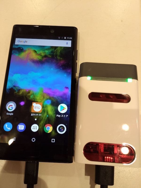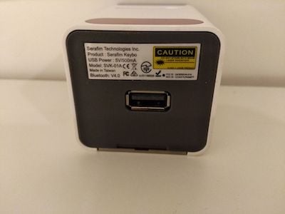 台湾のメーカーが作った商品らしく、Bluetooth接続することでキーボードとして使うことができるだけではなく、底面にUSBポートが付いており、モバイルバッテリーとしても使えたり、別途アプリをインストールすれば、演奏などに使うキーボードの鍵盤が表示され、演奏を楽しむこともできるようになっています。また、真ん中のボタンを押すと、後ろの枠(?)が伸びてスマホスタンドにもなります。地味に便利。