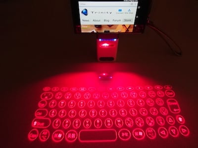 机にレーザーが照射されると、キーボードが表示され、そのままキーボードとして使えるという、なんとなく本とか映画とかSFとかで見たことがあるような無いような近未来なイメージってわかりますか。こんな感じです。