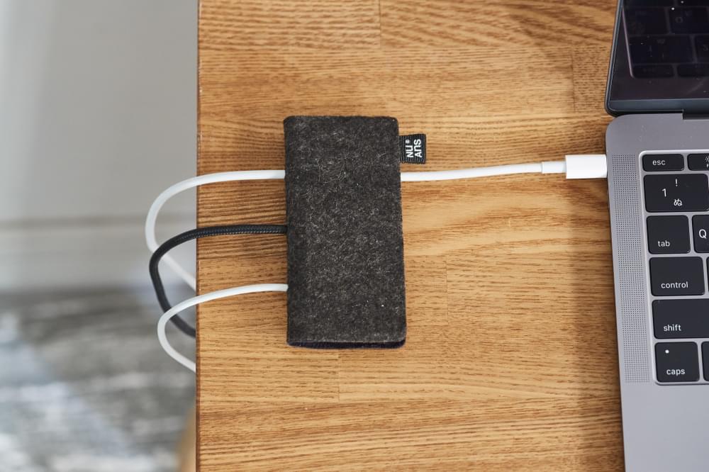 本体を包む質感のある素材は、スマートフォンと一緒に毎日持ち歩くモバイルバッテリーを周囲のムードに溶け込ませます。場所やファッションにかかわらず馴染むように、硬質なイメージのデジタルグッズに温かいニュアンスを与える質感に仕上げました。