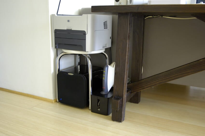 すっきりとしたデザインが特徴的な平らなフタは、中身を隠すだけでなく、ルーターやハブなどのデバイス置き場としても便利です。