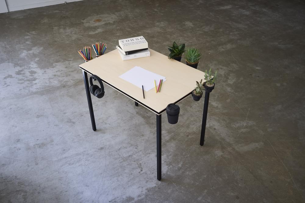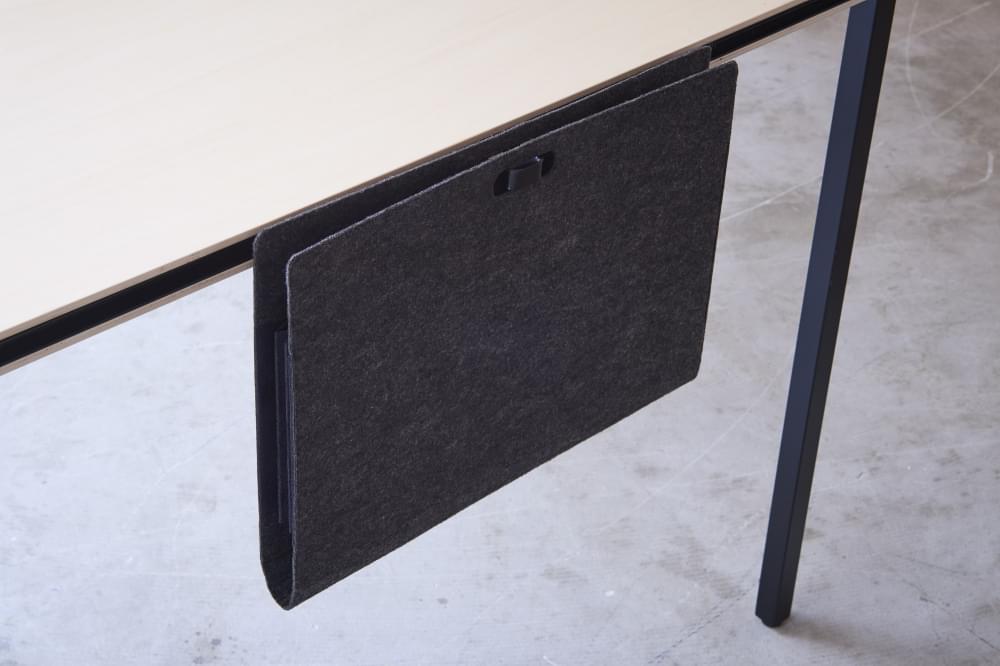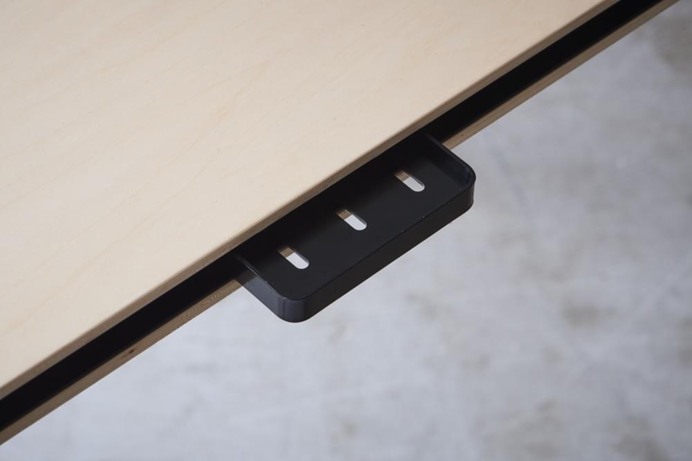 BASEは天板の全周囲についたスチール製のレールに、マグネットを利用して好みのアクセサリーをワンタッチで付け外しできます。