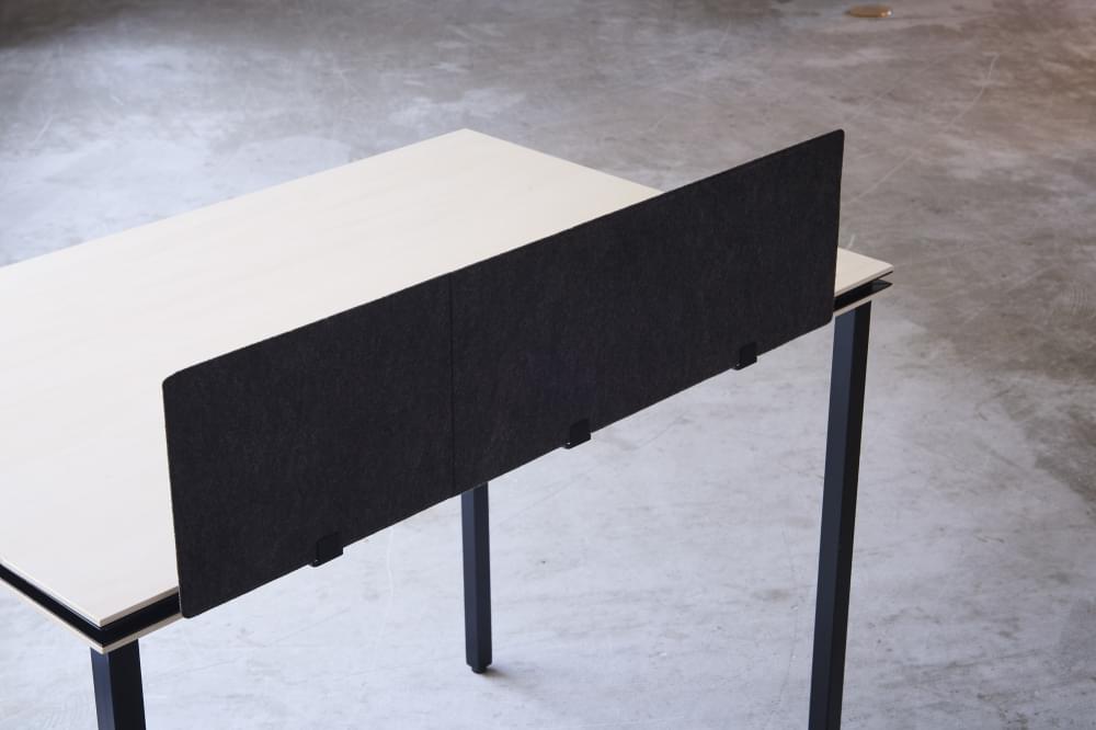 正面に立てたり、折り曲げて角を囲んだりと使い道を選べるパーティション。画鋲でポストカードや名刺を貼ることもできます。