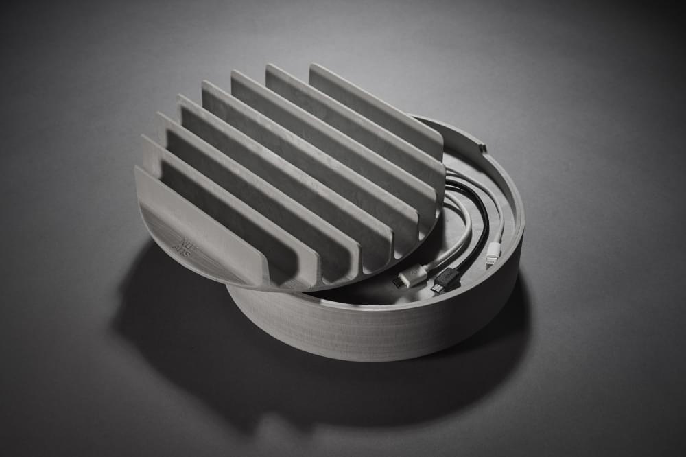 ストーンパウダーを混ぜ込んだオリジナルの樹脂で作られたCADDYは、大量生産のプラスチック製品ではなく、どこか工芸品のような佇まいでインテリアに馴染みます。