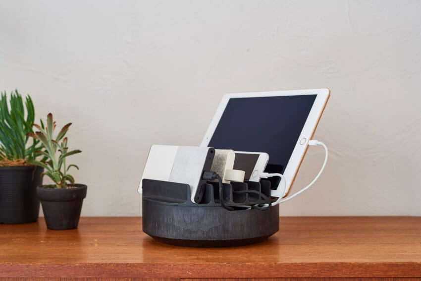 1人が何台ものデジタルツールを持つのが当たり前になった現在、充電場所のごちゃつきは、やっかいな問題でした。COLONY(コロニー)は、最大7台のデジタル機器を整理整頓して設置、充電することが可能な専用台です。