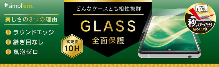 端末との一体感が美しい、端をなめらかに加工した全面保護のガラスプロテクターです。
