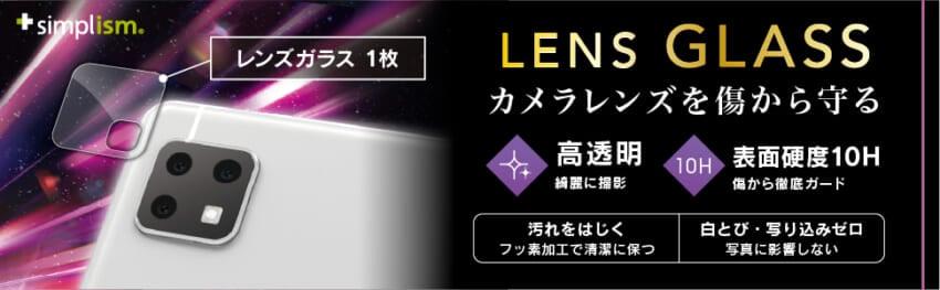 表面硬度10Hでカメラレンズを傷から守る、撮影時に影響をおよぼさない透明度の高いガラスプロテクターです。
