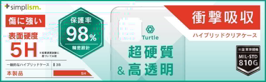 背面は超硬質素材で傷から守り、側面はやわらか素材で衝撃から守る、傷に強いハイブリッド構造のクリアケースです。