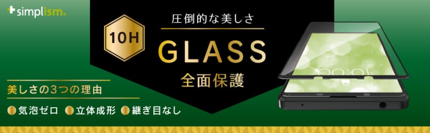 端末との一体感が美しい、継ぎ目のない一枚ガラスです。端を立体成型した全面保護のガラスプロテクターです。