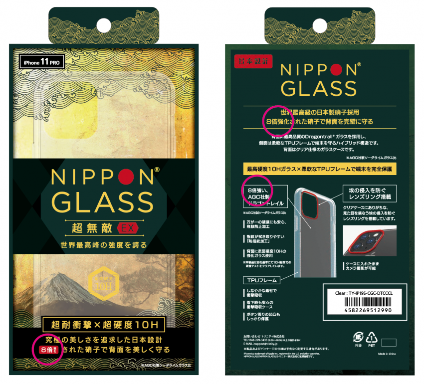 トリニティ株式会社(代表取締役:星川 哲視 本社所在地:埼玉県新座市)は、iPhone 11/11 Pro用ケース「NIPPON CASE」の一部製品におきまして、ガラス素材の強さを示すパッケージ表記に誤りがあることが判明いたしました。お取引先様、販売店様、お客様には多大なるご心配とご迷惑をおかけしますことを深くお詫び申し上げます。