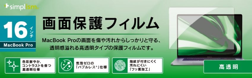 Simplism、16インチ/15インチMacBook Proに対応したケースとフィルムを発売