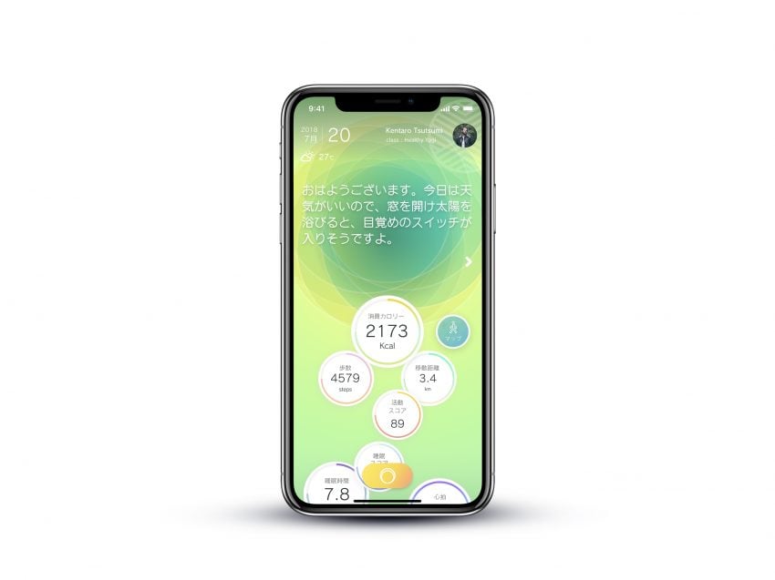 「weara」においては、ハードウェアだけでなく、アプリやクラウドサーバーにおけるサービス構築もすべて日本のチームがオリジナルで開発しました。アプリは毎日使い続けられるような美しいデザインが特徴です。ホーム画面には、日々の活動データや睡眠データに基づく総合的な「サジェスト」を表示。その人がより健康的な生活を送るためにやるべきことを提案します。「サジェスト」はユーザーに合わせてカスタマイズされるほか、センサーからのデータがたまっていくことで、機械学習・統計分析によってより良い改善提案につなげます。