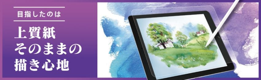 - 保護フィルム表面に特殊摩擦加工を施し、紙と同等の描き味を提供。紙の中でも特に上質紙の質感にこだわりました。