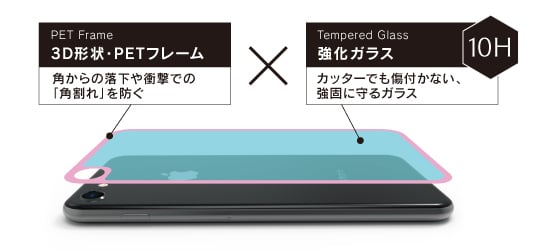 - ・絶対、角割れしない。強化ガラスとPETフレームの複合構造