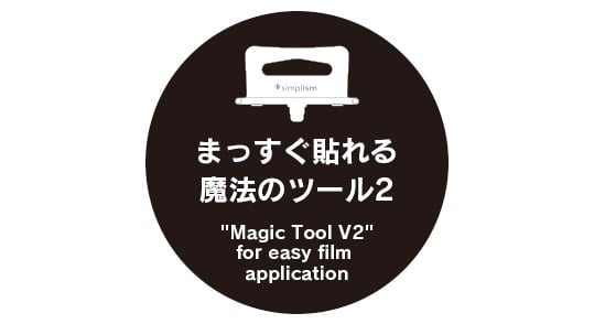 - 魔法のツール2は、フィルムの位置合わせを劇的に簡単にする貼付補助ツールです。Lightningコネクターに魔法のツールを挿し込み、フィルムをズレないように固定できるため、魔法のように真っ直ぐ貼ることができます。