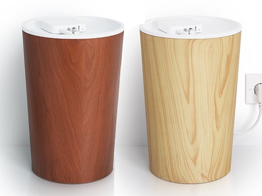 ACアダプターや、電源コードを挿した状態の電源タップなどをすっぽりと入れるだけです。円柱型の形状にウッド調をベースとした美しいデザインは、どんなインテリアにも馴染みます。