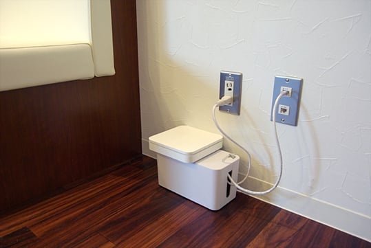 電源ケーブルやテーブルタップをすべてしまうだけで、見た目もスッキリ、簡単なプチリフォームができます。