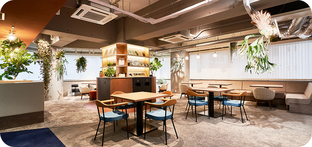 集中したい時は個室、チームでアイデア出しするときはカフェスペースなど、社員が自分に合う環境を自由に選べるようにしています。働き方が画一ではないからこそ、社員の個性や業務内容にフィットするワークスタイルを叶え、社員の創造性向上を実現します。