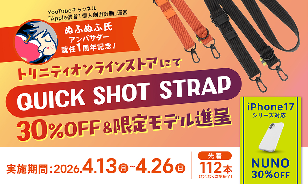 【ぬふぬふ氏アンバサダー1周年記念】「QUICK SHOT STRAP」30%OFF&限定モデル進呈!さらにiPhone 17シリーズ対応「NUNO」も30%OFFの特別還元祭