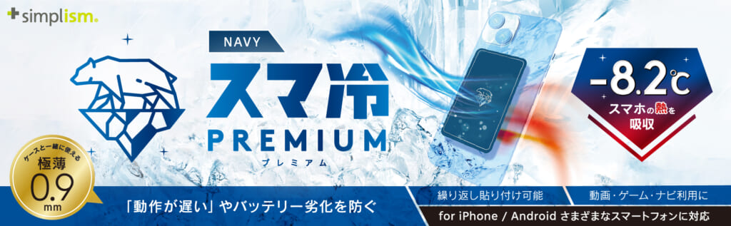 シリーズ累計35万枚を突破!最大-8.2℃の熱吸収でスマホを守る「スマ冷えPremium」に、待望の新色ネイビーとタブレット対応サイズが追加